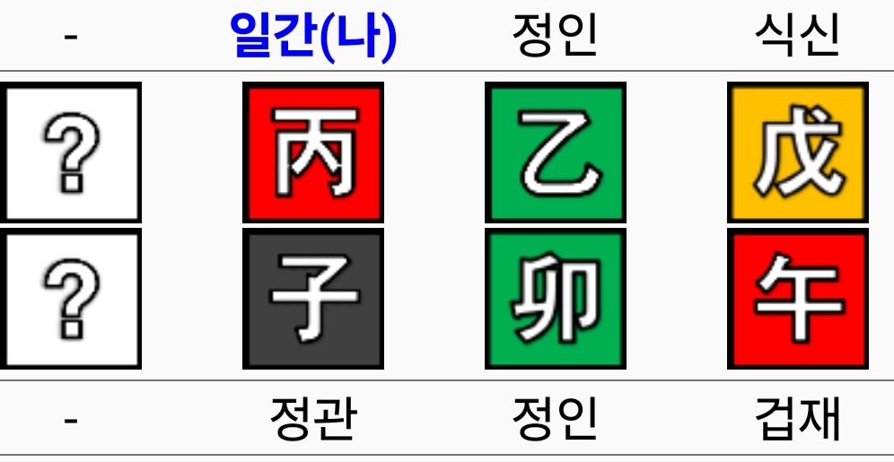 일지가 정관입니다. 일지가 정관이라 관인상생이 되어 부귀합니다. 연간에 식신을 두어 자신의 능력으로 인정을 받는 팔자입니다.