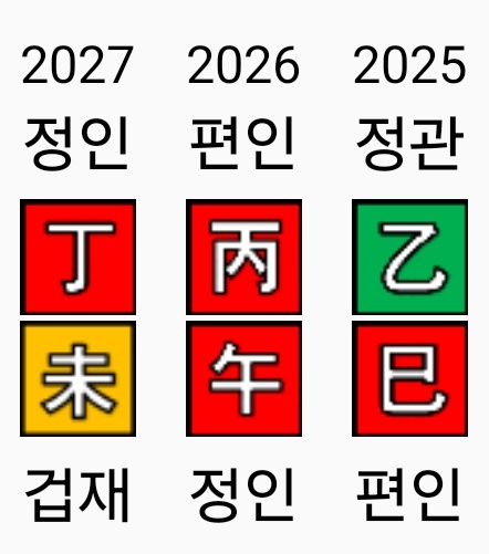 2025년 을사년부터 2027년 정미년 까지는 화의 기운이 지속적으로 들어오는 기간입니다.