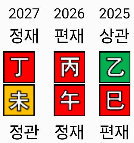 2025년 을사년, 2026년 병오년, 2027년 정미년에 임오일주는 다음과 같은 운을 만나게 됩니다.