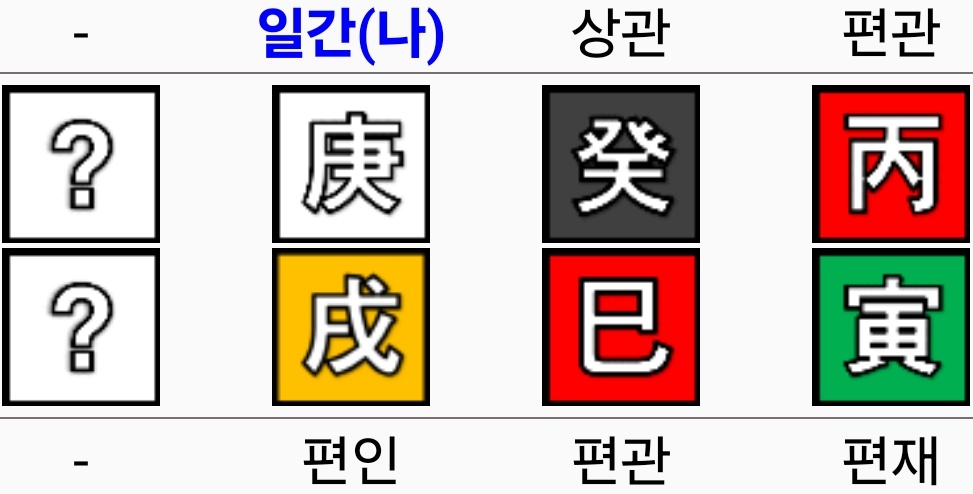 개그맨 권혁수 사주의 주목할만한 부분은 월간 편관이 천간으로 투간 되어 년간 편관으로 드러난 부분입니다. 편관격입니다. 편관은 칠살이라고도 하며 나를 극하는 오행으로 환경이 힘들거나 업무가 과중할 수 있는 사주입니다. 편관은 나의 환경이나 지위가 힘들고 높다는 것을 의미합니다. 지지에 있는 사화가 나를 힘들게 하는 환경이라면 천간에 있는 병화는 나의 지위가 높다는 것을 의미합니다. 경금일간인 개그맨 권혁수는 화극금으로 제련되면 자신의 가치가 올라가는 사주입니다.